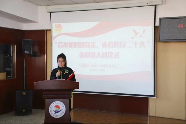 为学习贯彻习近平新时代中国特色社会主义思想和党的二十大精神、团的十九大精神,引领广大团员永远跟党走、共筑中国梦,切实增强团员的光荣感、使命感以及团组织的凝聚力,12月8日中午,校团委在图书馆501报告厅举办“高举团旗跟党走,青春践行二十大”新团员入团仪式。校团委指导教师张云惠、各系团干部及新发展的团员共300余人参加。