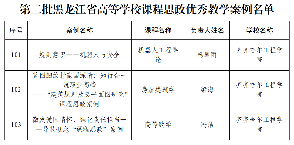 近日,学校课程思政教学研究示范中心组织教师参加了黑龙江省第四批课程思政示范课程和教学团队培育项目、第二批课程思政优秀教学案例的遴选工作,我校入围课程思政示范课程和教学团队培育项目2门,课程思政优秀教学案例3个,获奖数位居黑龙江省同类院校前列。