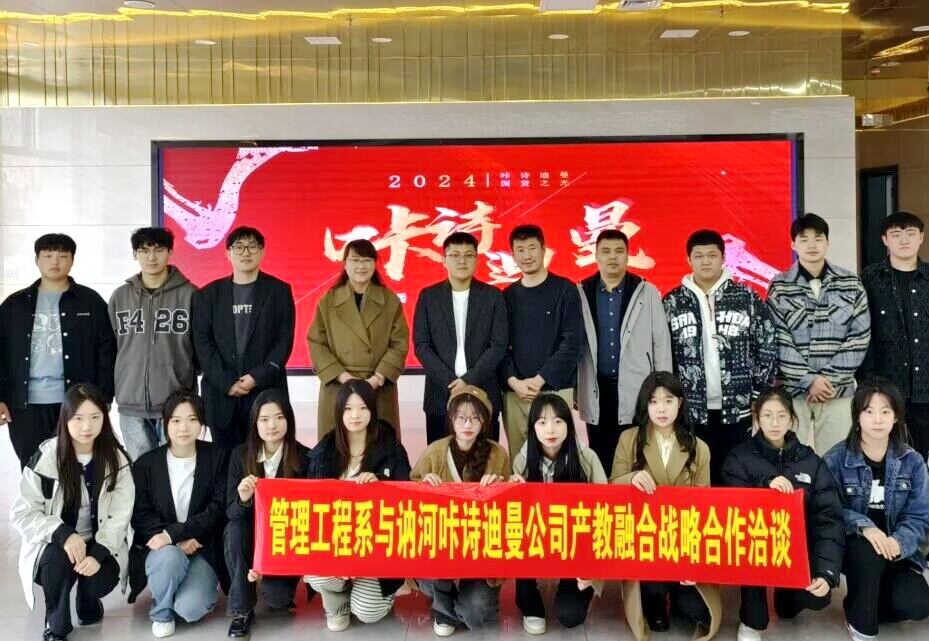 3月28日,应讷河咔诗迪曼集团有限公司邀请,管理工程系副主任孟艳辉、电子商务专业长徐一楠、互联网金融专业长沈斯文、电子商务产业学院孙文及学生代表一行赴讷河与该公司开展产教融合实地考察与洽谈。公司董事长张国军、总经理武藤龙等人给予热情接待。