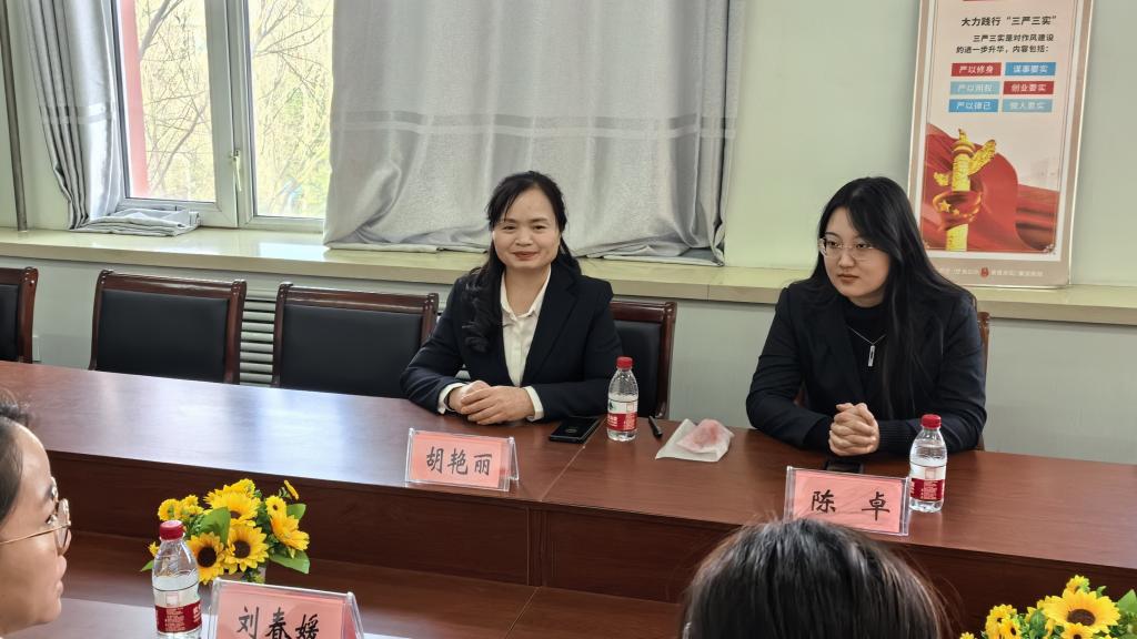 郭玲玲与胡艳丽洽谈校企共建,并达成合作意向,中心将为学校提供护理学、康复护理学、言语康复、运动康复和治疗等实习机会。