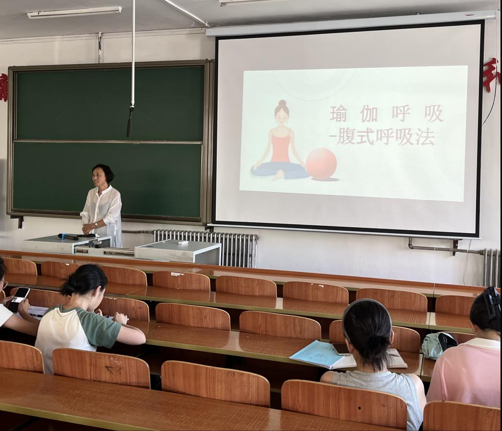 会上,刘晓懿带领魏颜、陈凯悦、燕越颖和郭冰倩四名教师进行瑜伽体式展示,期间与教师们进行互动,教授教师们简单的肩颈训练,与会人员跟随刘晓懿练习,纷纷表示肩颈舒展,效果明显。