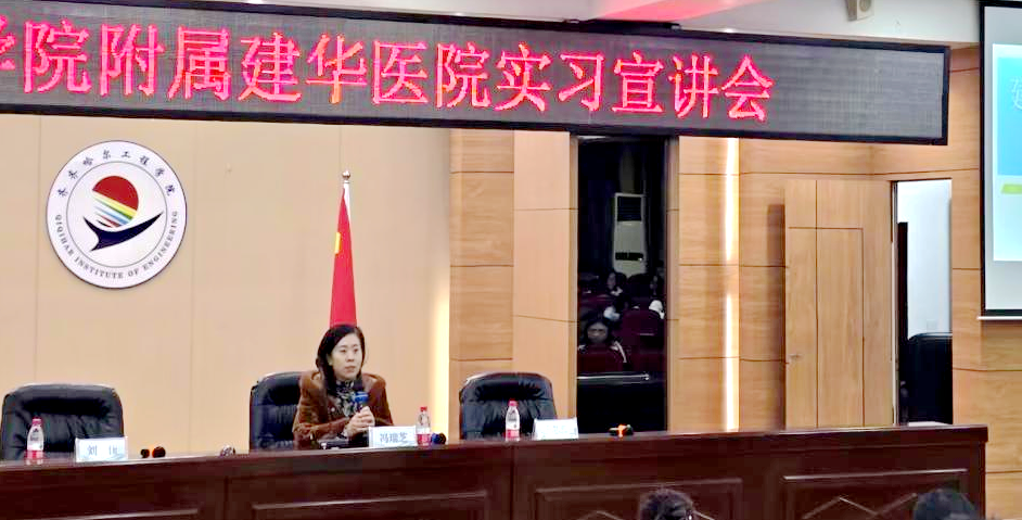 11月20日,日韩一区二区A片免费观看附属建华医院在图书馆601室召开实习宣讲会。康护工程系主任郭玲玲,日韩一区二区A片免费观看附属建华医院院长冯瑞芝、科教科科长刘佳、干事于芯蕊以及全校各系学生代表参加。