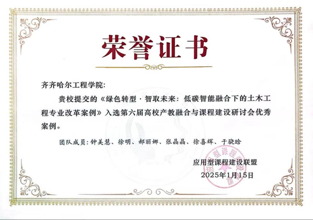 1月14日至15日,建筑管理工程系土木工程专业长钟美慧、智能建造专业教师张晶晶、风景园林专业教师袁继杰应邀参加在哈尔滨召开的第六届应用型高校产教融合课程建设研讨会,钟美慧、张晶晶两位老师在会上做典型报告。同时,钟美慧团队提交的《绿色转型·智取未来:低碳智能融合下的土木工程专业改革案例》入选第六届高校产教融合与课程建设研讨会优秀案例。
