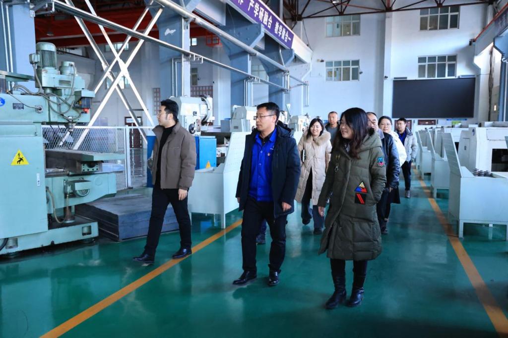 胡胤哲一行在张静及相关人员的陪同下,实地参观了学校冰上运动馆、体育馆、游泳馆及外事中心等场所,重点考察了齐三机床有限公司生产车间及劳模创新工作室。学校“政校企合作、产学研融合”的办学模式、先进的教学设施以及产教融合的创新成果,䊨得了胡胤哲一行的高度评价。