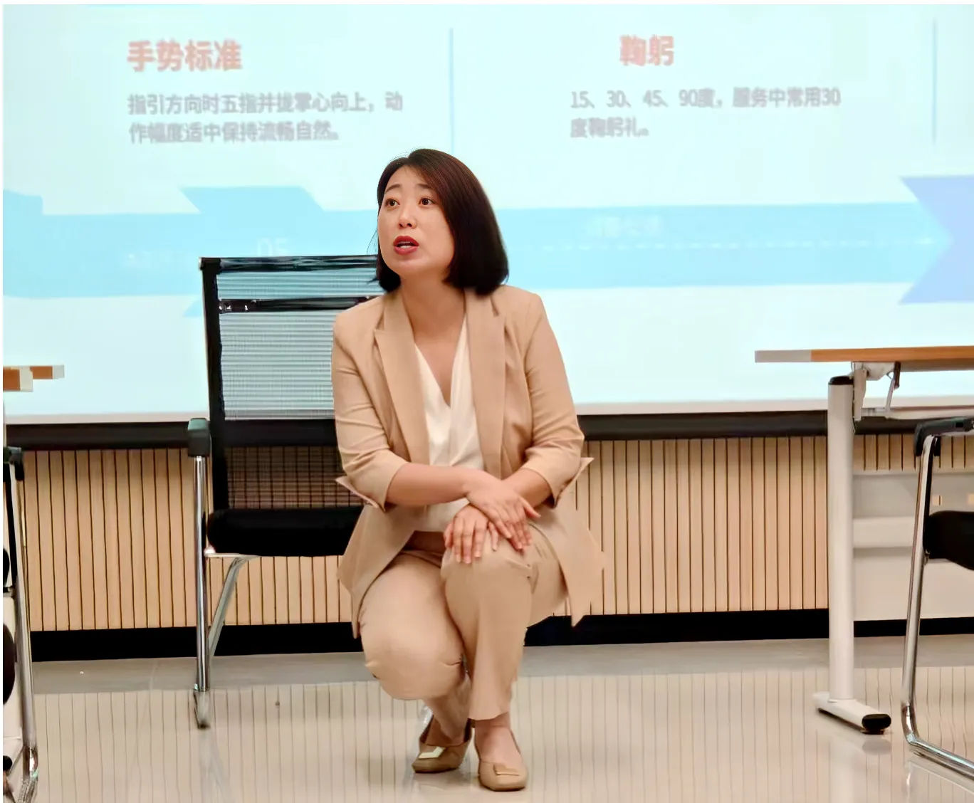 为切实提升员工职业形象与服务水平,奠定产教集团高质量发展根基,8月18日下午,齐工产教集团在人民会堂二楼拜泉厅举办全员基础服务礼仪专题培训。本次培训由集团副主任宫玉斌统筹组织,特邀齐齐哈尔市北方旅游职业学院张天舒老师担任主讲,产教集团全体员工参加培训。