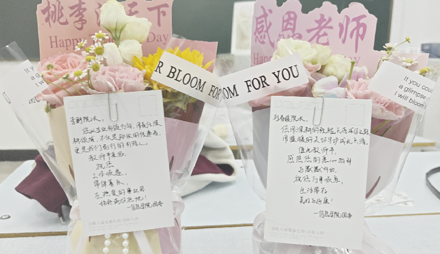 一场祝福接力:诉师生真情,暖校园时光。课堂上的一束鲜花、信笺里的一段心里话、书签上的一句寄语……教师节期间,学校各二级党组织结合自身特色,组织学生开展了形式多样的祝福活动,向授课教师、生涯导师、辅导员表达了感恩之情。信息学院的学生在写给李野院长的祝福中写道:“您从专业到领域,用深厚的经验点亮成长之路;用温暖的关怀守护成长点滴,更是我们前行的引路人。”这些真挚的祝福,通过课堂互动、线下投递等方式传递到教师手中,不仅让教师们收获了满满的感动,更拉近了师生间的距离,让校园充满温情。