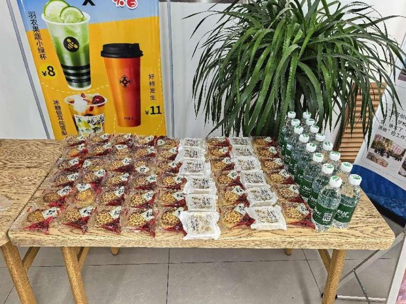 一份“桃李”祝福:融食堂心意,送节日温暖。9月10日当天,学校各食堂门口格外热闹——这里设置了“教师节祝福台”,工作人员手捧“桃李礼包”(内含月饼、矿泉水和食堂代金券),向每一位前来就餐的教师送上节日祝福。据统计,当天累计发放200余份礼包。工作人员以贴心服务让教师在日常饮食中感受到节日的温暖。