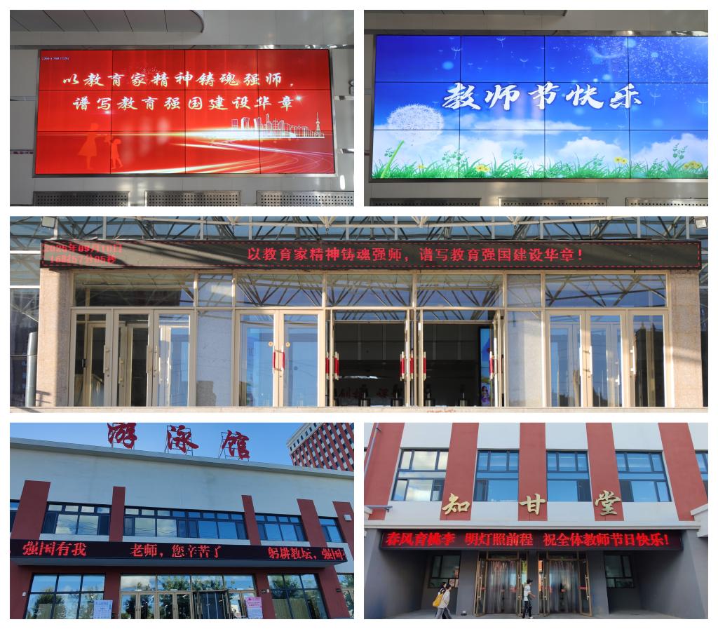 一次“亮灯”仪式:亮校园敬意,燃尊师之光。学校于9月9日至10日,通过图书馆、教学楼、产教融合基地等核心区域的电子显示屏,以滚动字幕形式开展“为教师亮灯”活动。字幕内容涵盖“青春引路人”“躬耕教坛、强国有我”“老师您好!”“教师节快乐”“弘扬教育家精神”等主题词,让尊师重教的氛围渗透校园每个角落。明亮的字幕在夜色中格外醒目,不仅点亮了校园的夜晚,更将尊师重教的理念传递到每一位师生心中。