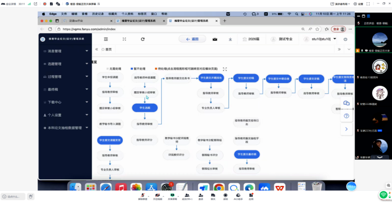 培训中,邀请了维普管理系统工程师曾毅针对毕业设计(论文)管理流程展开培训。培训采取线上线下相结合的形式,分主题、分场次地为全校教学管理人员、指导教师及2026届毕业生详细讲解了角色分配、任务书发布、过程文档审核、答辩资格审核、成绩录入等关键环节。培训内容精准对接实际需求,有效帮助全体师生熟悉工作流程,为毕业设计(论文)全流程数字化管理奠定了坚实基础。