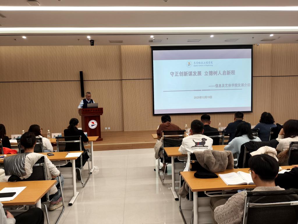 为深化产教融合、完善校企协同育人机制,搭建校地、校企多方对话合作平台,推动人才培养与产业需求紧密衔接,12月19日,由信息学院、艺术与体育学院主办的产教融合政校企合作会议在产教融合基地人民会堂齐齐哈尔厅召开。会议聚焦产业需求与教育供给对接、实践教学改革、校企资源共享等核心议题展开深入的交流。