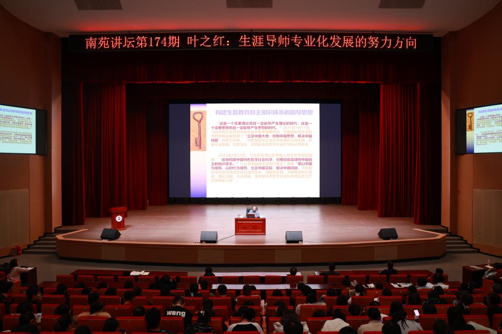 随后,我校第174期“南苑讲坛”在人民会堂举办。叶之红以《生涯导师专业化发展的努力方向》为题作专题讲座,全校教职工及生涯导师参会聆听。讲座中,叶之红结合自身在高等教育领域的丰富经验,深度解析了新时代生涯导师的专业化发展核心要点,她强调,高校要始终坚持落实立德树人根本任务,以教育教学改革为抓手,持续提升人才培养质量。现场气氛热烈,参会教师纷纷表示讲座内容务实,为今后开展生涯指导工作提供了有力的理论支撑与实践借鉴。