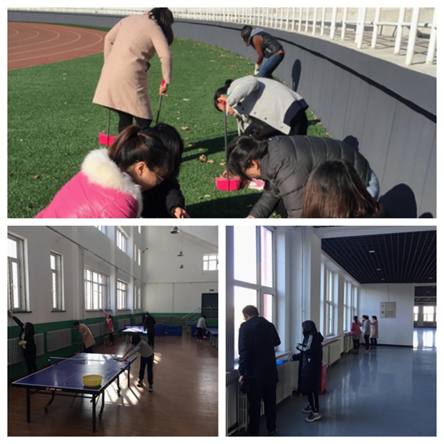 10月12日,基础部党支部组织全体党员开展志愿服务活动,大家带着拖把、扫帚、抹布、垃圾袋、铲子、水桶等工具,来到体育场、羽毛球场、乒乓球馆,捡垃圾、擦玻璃和窗台,在劳动中践行为人民服务宗旨,加深对“不忘初心、牢记使命”重要意义的认识。