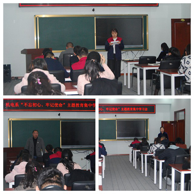 11月12日下午,机电工程系党总支书记高爱利主持学习讨论会并带领党员学习《认真学习党章 严格遵守党章》《中国梦 复兴路》《关于坚持和发展中国特色社会主义的几个问题》的部分内容。在随后的讨论中,系党总支书记高爱利分享了自己学习《关于坚持和发展中国特色社会主义的几个问题》的体会;系党总支副书记孙晓芳分享了自己学习《认真学习党章 严格遵守党章》的体会;系党总支组织委员黄颖就自己对《中国梦 复兴路》的学习并结合王文谨教授课程建设讲座,分享自己对教育工作者的初心和使命的理解。