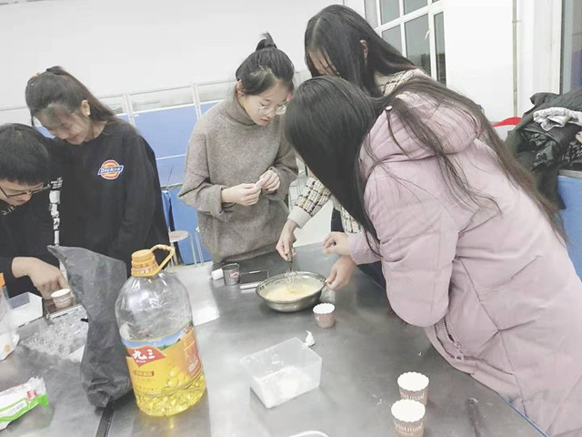 11月20日晚,绿色新起点社团组织制作奶油蛋糕实践活动,13名社团成员参加。同学们分为两组,由指导教师和社团负责人带领,分别准备食品原料、清洗厨具、使用小称进行称量、制作奶油等。因为活动前社团负责人讲解过用电注意事项以及蛋糕烘烤前面糊的外观状态、奶油的打发程度等知识,此次制作中同学们互相探讨,踊跃动手,展现出对美食制作的浓厚兴趣。