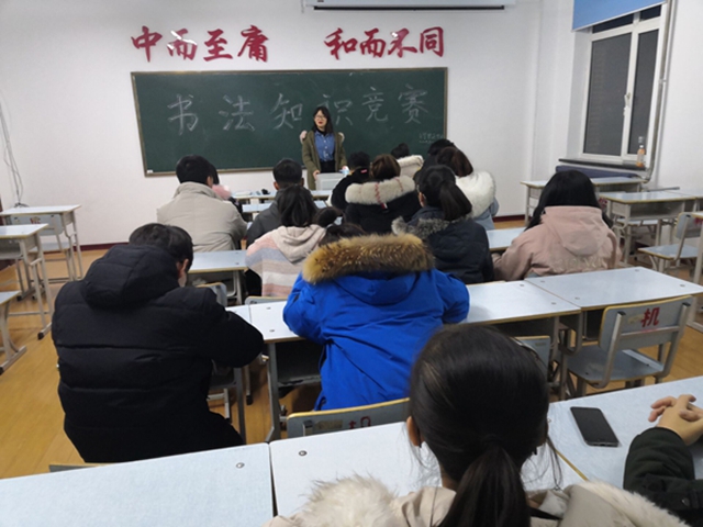 为检测同学们对书法知识的了解程度,进一步激发同学们对书法的兴趣,12月5日,文学书法协会举办了书法知识竞赛。此次竞赛的题目不仅涉及古今书法历史知识,还涵盖了近现代书法大家及其代表作品知识,参赛同学积极抢答,现场氛围热烈。协会会长对各位同学的抢答成绩进行排名并颁发奖品,在竞赛总结中鼓励同学们多了解书法知识,在课余坚持书法练习。