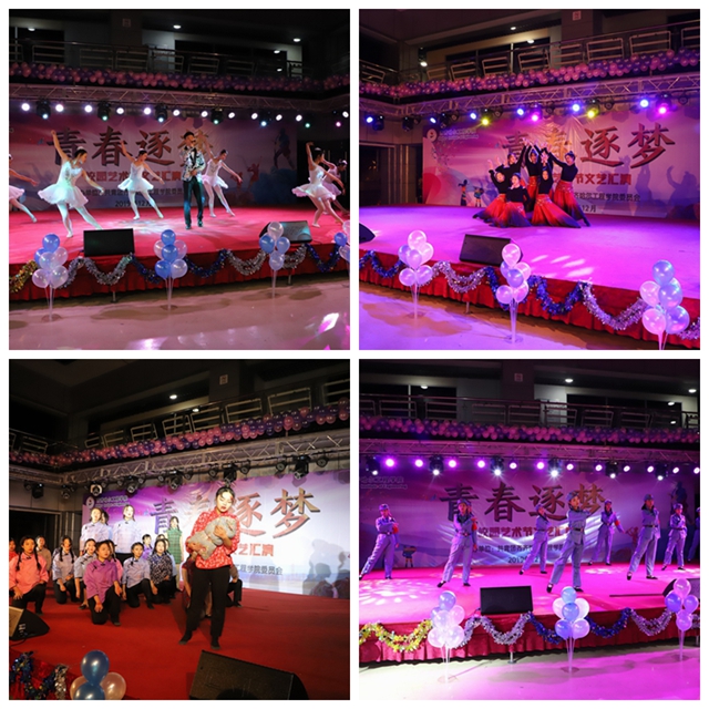 为推进校园文化建设,陶冶师生的艺术情操,丰富校园文化生活,为学生提供一个展示艺术才华的舞台,12月16日-21日,学校团委在大学生活动中心举办“青春逐梦”校园艺术节文艺汇演,近270名学生演员身着盛装,舞动青春,歌唱未来,为来自6个系的4800名师生奉献了6场精彩的文艺节目。
