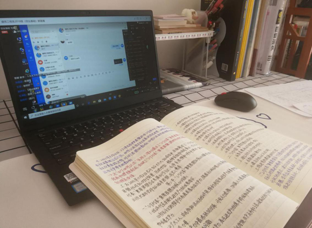 土木181班石一凡——疫情虽阻止了我们返校的脚步,却无法阻止我们对学习的热情。我直播课上认真听讲,记录所学的知识。待到春暖花开之时,我们再聚齐工程。
