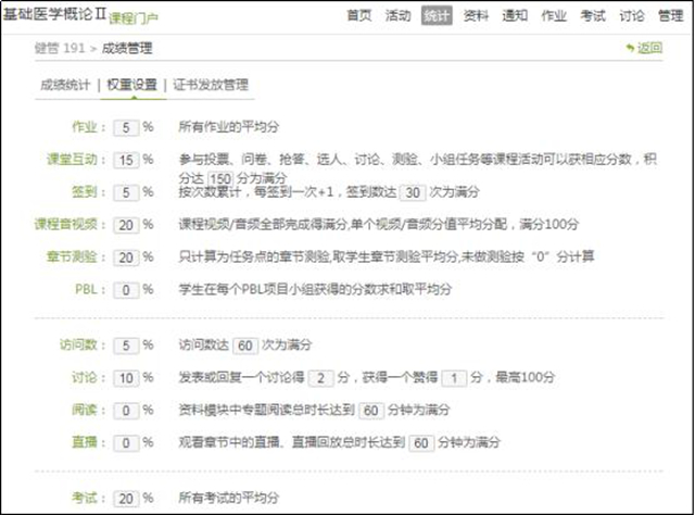 (二)线上学习参与成绩权重分配: