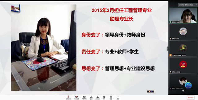 6月17日下午,建筑工程系在线召开成长故事分享会,专业长张好徽、李智慧、宋兴蕾,专业教师李俊、姜力力、潘娜交流分享个人成长故事。系教学工作副主任徐明主持活动。