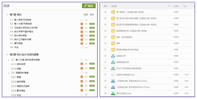 (三)线上资源的选择。线上资源分三类:第一类是将采用录制文档或PPT+语音讲解的速课形式置于任务点中。第二类是线上平台《卫生统计学》的教学资源,选择比较适合学生学情的授课资源,如正态分布的公式推导、抽样分布的动态演示等,通过录屏软件录制,置于学习通中。第三类是养成良好学习习惯,提高学习效率类内容的推荐,如将“康奈尔笔记法”纳入课程视频资源中。