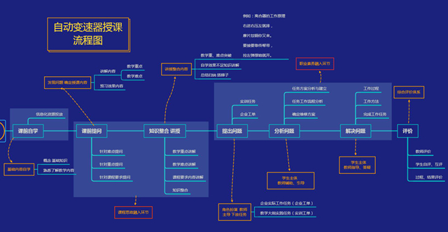 在线教学中,以学情为基础,根据课程设计内容,在课前布置学习任务,由学生利用信息化资源完成基础知识的自学;授课过程中,第一环节是对学生自学情况进行摸排,针对课程重点、难点以及课程要求内容进行提问,从学生回答中了解课前的学习情况,确定教学内容,对教学重难点以及自学不理想的内容进行讲解,整合知识。在帮助学生突破难点和重点时,用学生易于掌握的顺口溜来帮助记忆,例如离合器的工作原理的“右进右压左就排,摩片怼钢你又来,要接要靠传帮带,控左弹撑咱就开”。第二环节以提出问题、分析问题、解决问题作为实践教学主线。由教师扮演车主,主诉汽车的故障状况,因教师有担任汽车4S店技术总监的经历,所以作为课程任务提出的问题都是来源于实际岗位工作中的,并以企业、实训工单形式下发,学生分组讨论维修方案、工作流程,形成解决问题思路。以学生为主体,教师在本环节中起辅助引导作用,学生根据指定的方案完成工作任务,分工协作完成规定的操作过程,教师答疑指导。任务结束后,进行综合评价,包括自评、小组互评、师评三部分。课程讲解部分还融入思政教育,课程的动手实践环节融入职业素养的内容。