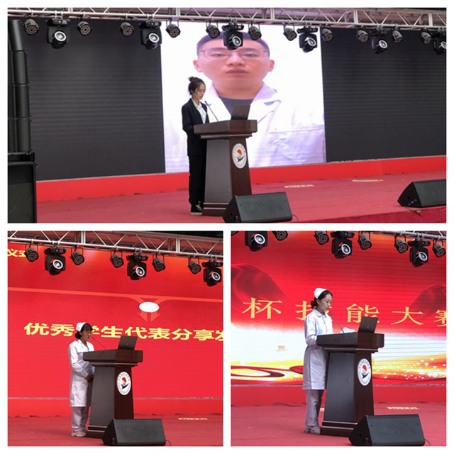 护理学184班蒋揽月同学代表获奖者做表态发言。护理学172班刘超同学是国家励志奖学金获得者,他通过网络平台与大家分享了疫情防控期间的经历与学习感悟。健管181班周瑶同学作为学生代表发言,分享了自己在学习方面总结的经验与技巧。