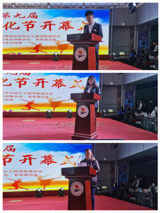 10月28日晚,我校第九届社团文化节开幕式在学生活动中心举行。学生工作处负责人刘贤鹏、副处长郭明敬、信息工程系学生工作副主任孙晓芳、机电工程系学生工作副主任王虹及各社团指导老师、负责人参加了开幕式。
