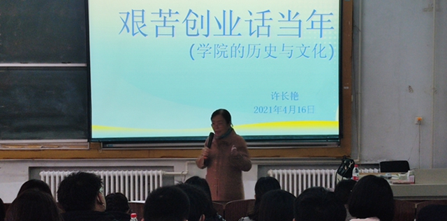 许长艳老师的报告从一辆红色的吉普车讲述开始讲起,在她生动的讲述下,大家了解了当年学校艰苦创业的历程,一张张老照片呈现的就是一段段生动的故事,一枚普通的信封就能勾起一段充满传奇色彩的回忆,一张合影展示的就是一群始终与时俱进的创业者形象。