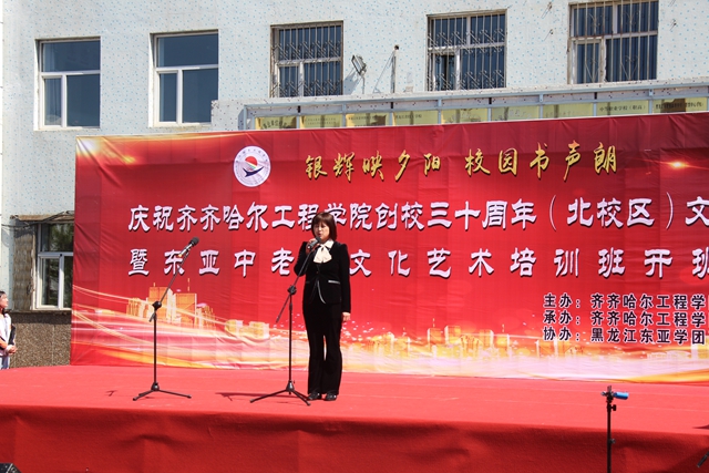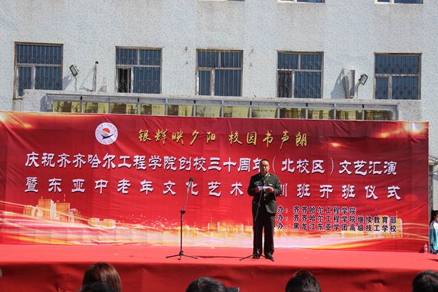 “银辉映夕阳,校园书声朗”,5月9日上午,继续教育部、东亚技职校在北校区举办庆祝日韩一区二区A片免费观看创校三十年文艺汇演暨东亚中老年文化艺术培训班开班仪式。继续教育部副主任孙娱芯,东亚技职校校长郭磊,五龙街道新宫社区党支部书记尹钰、市爱心长跑协会名誉会长姬永发、会长王志芳,市文联守正文艺人协会会长李乃勋及东亚技职校师生、中老年培训班300余人参加活动。