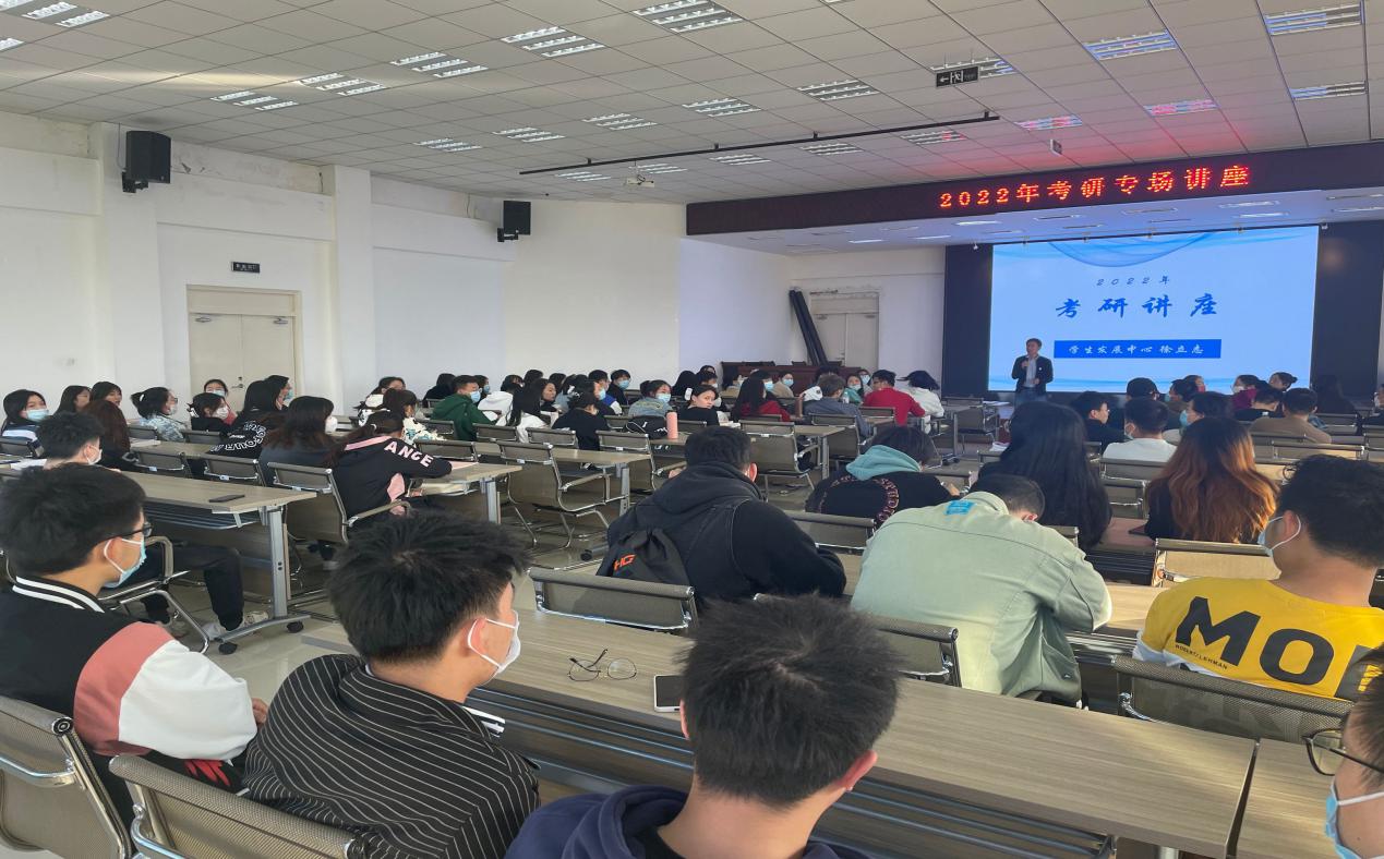 10月7日下午,学生发展中心在二号教学区2508室,举办《又一次同站一个跑线上》考研专题讲座。大三、大四近120名在校生参加。负责就业工作的徐立志老师主持讲座,他从为什么考研、考研的意义、考研基本常识、考研方法等方面展开,结合历年研究生报考数据、录取数据、及考研情况,为同学们进行详实分析和讲解,他希望同学们认清考研形势,确定目标,为将来就业打下坚实基础。讲座结束后,徐立志老师对部分学生在考研与就业方面存在的困惑逐一进行了解答。