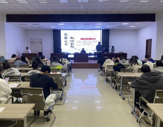 为弘扬中华民族传统文化,传承中国书法艺术,营造文化氛围,用笔墨书写“深秋”,10月27日晚,由校团委主办,学生会、书法爱好者协会承办的“寒露之书 秋心不愁”书法比赛在二号教学区2508会议室举行,经过各系初赛,共26人进入决赛。