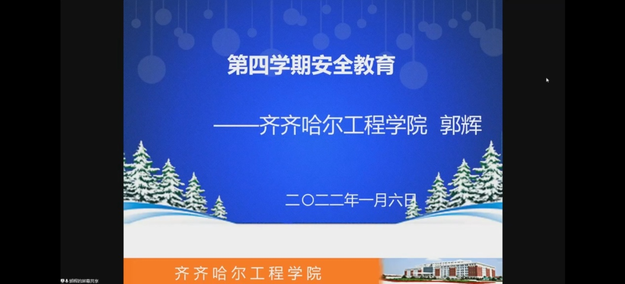 1月6日下午,学校开展了“第四学期安全教育”专场讲座。此次讲座由学生工作处、保卫处联合举办,全体学生在线参会,主讲人为保卫处郭辉。
