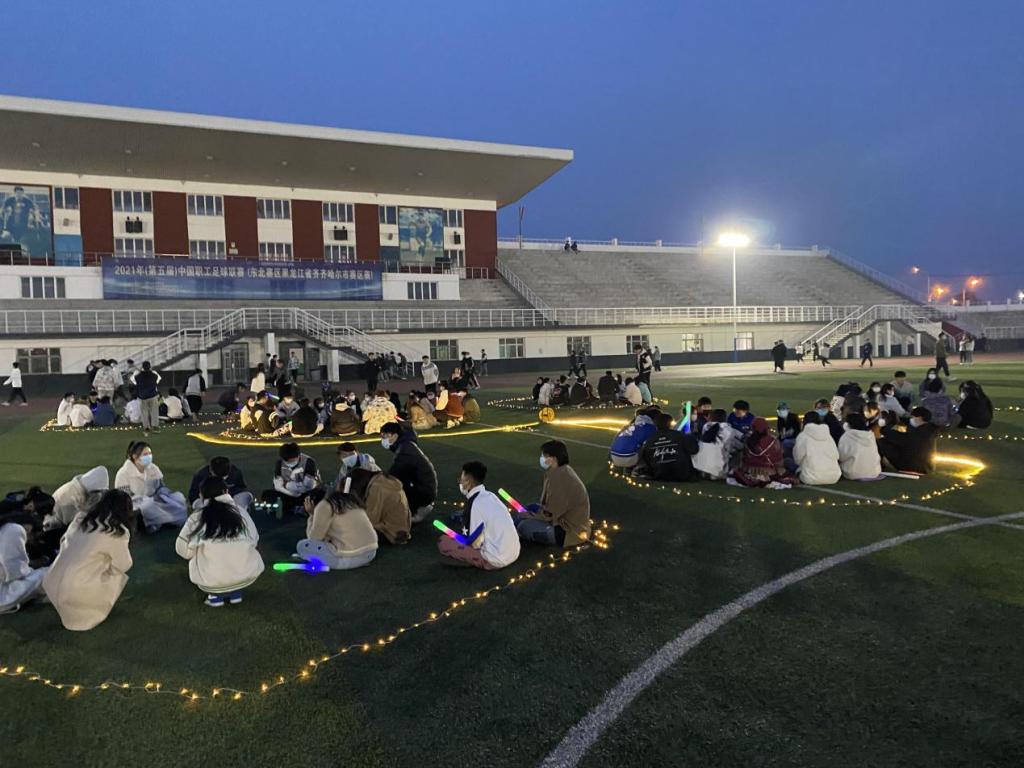 最后,整场活动在《江南》这首歌曲声中结束。同学们纷纷举起了荧光棒和手电筒随着音律舞动,体育场上流光溢彩,吸引了大量的学生驻足观看。
