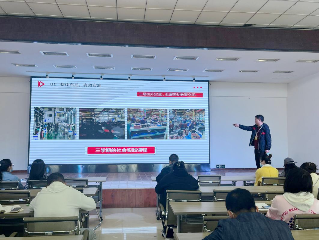 机电工程系董晓亮老师作题为《积极构建劳动教育体系,促进学生全面健康成长》的汇报,基于现存问题提出了三点解决措施:一要科学规划、制定方案、加强劳动教育管理;二要从整体布局,有效实施;三要重视目标管理,加强劳动教育评价。