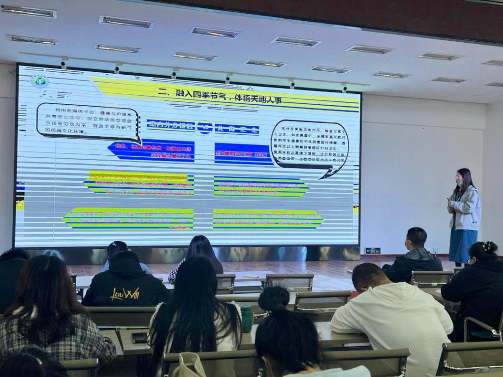 建筑工程系宋雪微从劳动教育的内容、意义及措施三方面进行阐述:将室内外环境管理作为劳动教育的重要内容,融入日常生活,促使学生自觉参加劳动,提升自我生活管理能力和劳动习惯。