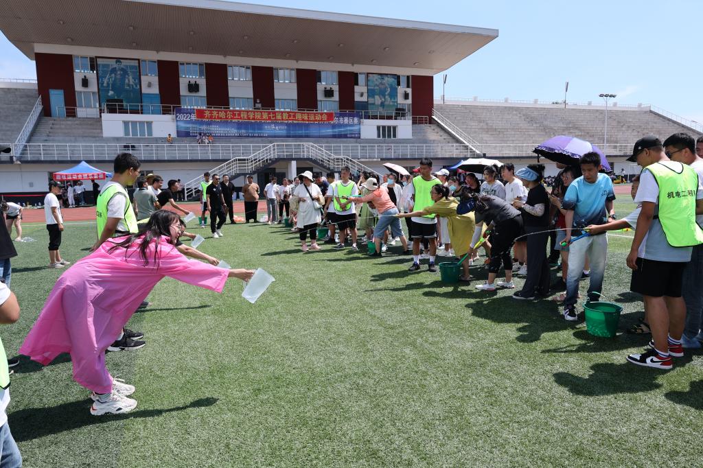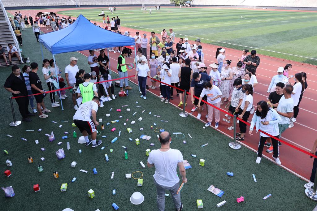 比赛现场,姜岩主席一直关注赛事的组织、沟通、协调工作。机电工程系有20多名志愿者,顶着骄阳,在“签到处”“套圈场”和“比赛场”等处辅助比赛,他们汗流浃背地忙碌,助力比赛顺利进行。
