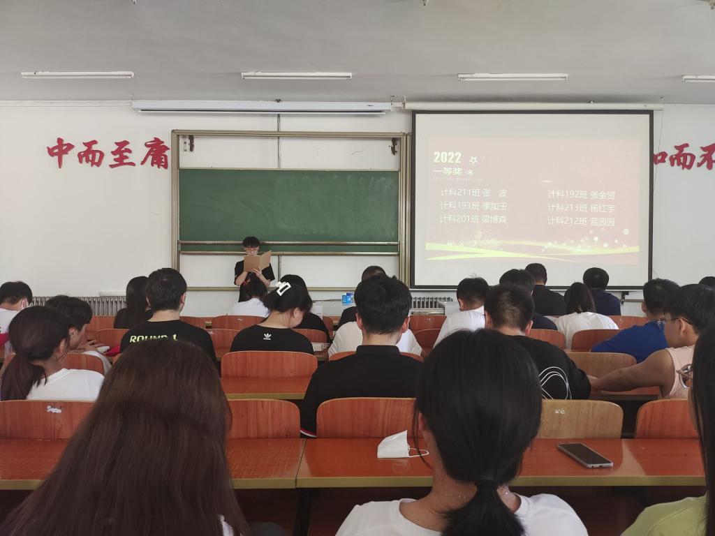 为推进专业实践学期实习,促进学生专业学习和实践能力提升,营造浓厚的科技创新氛围,7月27日下午,计算机科学与技术专业在一号教学区1101阶梯教室召开专业实践技能竞赛颁奖会。信息工程系教学工作副主任李野、计算机科学与技术专业负责人、专业实践学期指导教师、计算机科学与技术专业生涯导师和该专业学生参会,部分师生通过腾讯会议线上同步参加。