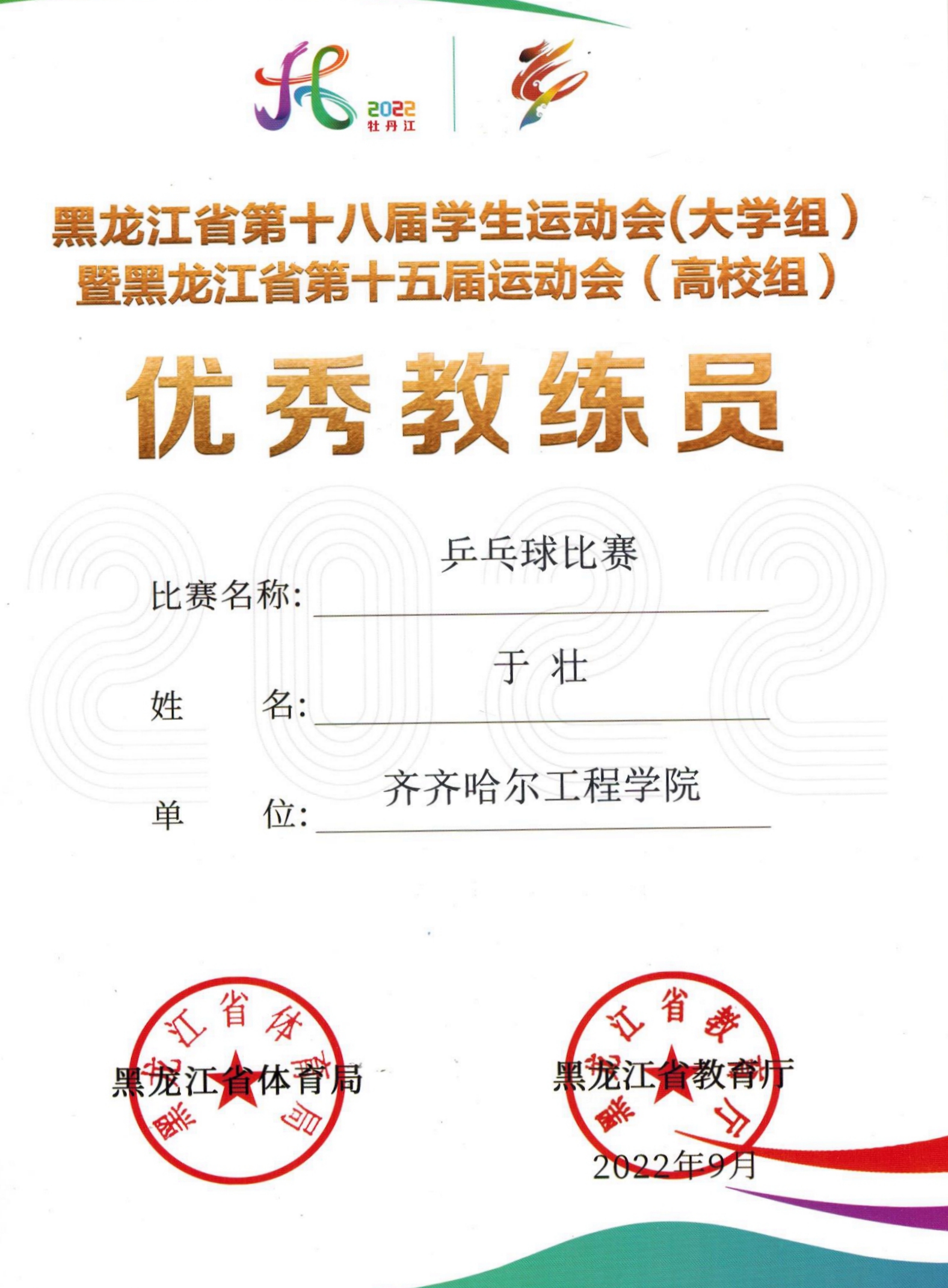 在8月17日至9月15日期间举办的黑龙江省第十八届学生运动会上,我校学生代表队参加了武术和乒乓球二个项目的角逐并获佳绩。