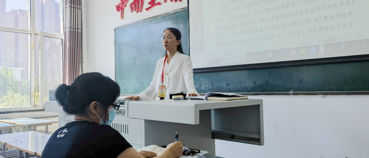 会上,刘春媛带领全系教师学习师德师风的相关文,进一步领会提高政治站位,落实主体责任,贯彻落实中央八项规定精神、狠刹“四风”的重要时间节点的意义,进一步认识从讲政治高度,到“三节”期间持续正风肃纪的重要性,切实履行全面从严治党主体责任,强化师德师风建设;要严明纪律规矩,强化师德师风,要严格遵守中央八项规定精神和廉洁自律各项规定;要强化监督检查,严肃执纪问责,坚持从严执纪,对有令不行、有禁不止的,发现一起,查处一起,通报一起,对情节严重、造成恶劣影响的,既要追究当事人的责任,又要追究主体责任落实不到位的问题,严肃问责追责。
