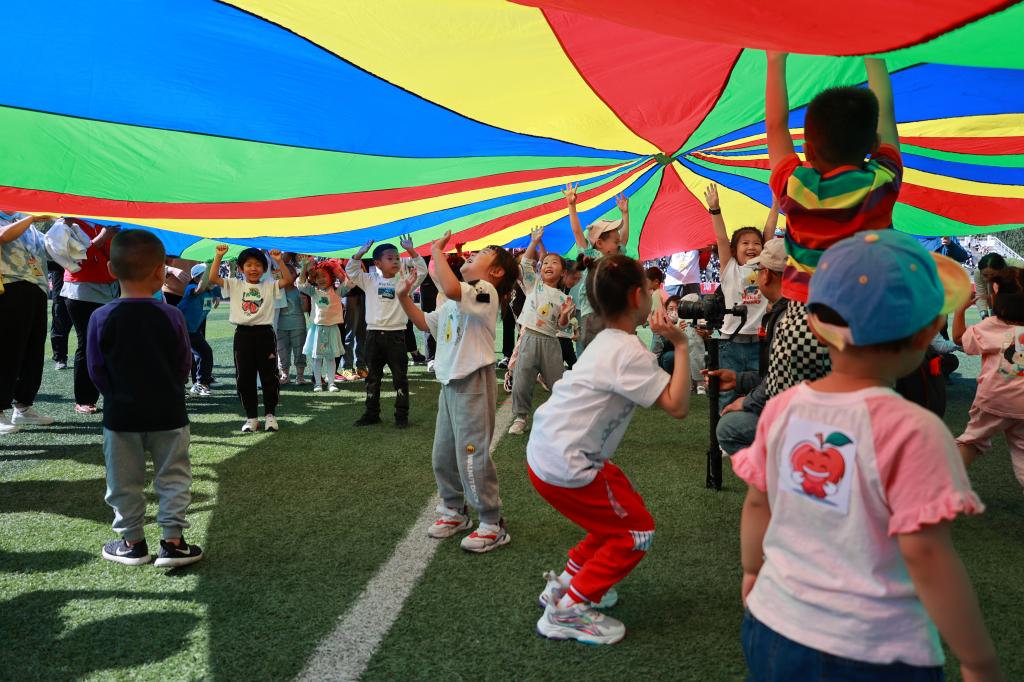 吉祥的伞盖下,传出了孩子们的欢声笑语;“青蛙过河”让孩子们兴奋不已;“投掷沙袋”让孩子们欢呼雀跃。孩子们在家长们的陪伴下,比赛投入,各个兴高采烈。有趣又互动性强的亲子运动,温馨有爱,感染着每一位家长和宝贝们。陪着孩子玩的家长们,也仿佛回到自己欢乐的童年。