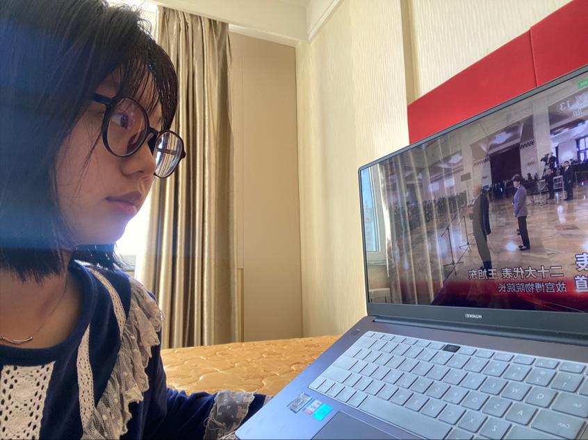 管理工程系互金221班裴莹莹:听了二十大报告,我深切的感受到国家的富强离不开党的领导,明白了“新时代的伟大成就是党和人民共同拼出来、干出来、奋斗出来”这句话的真正意义,作为当代大学生,我们应肩负起历史赋予我们的使命,做一名优秀的时代青年。