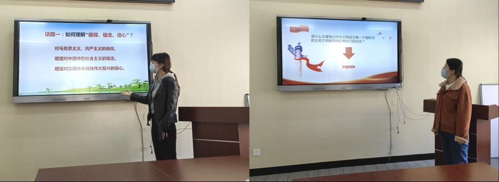 教研室新教师王美琦的试讲题目为《思想道德与法治》教材中的第二章“追求远大理想 坚定崇高信念”。王美琦老师从两个方面阐述了理想信念的内涵及重要性,并呼吁当代大学生要树立崇高的理想和信念,坚定对马克思主义、共产主义的信仰,坚定对中国特色社会主义的信仰,增强对实现中华民族伟大复兴的信心。