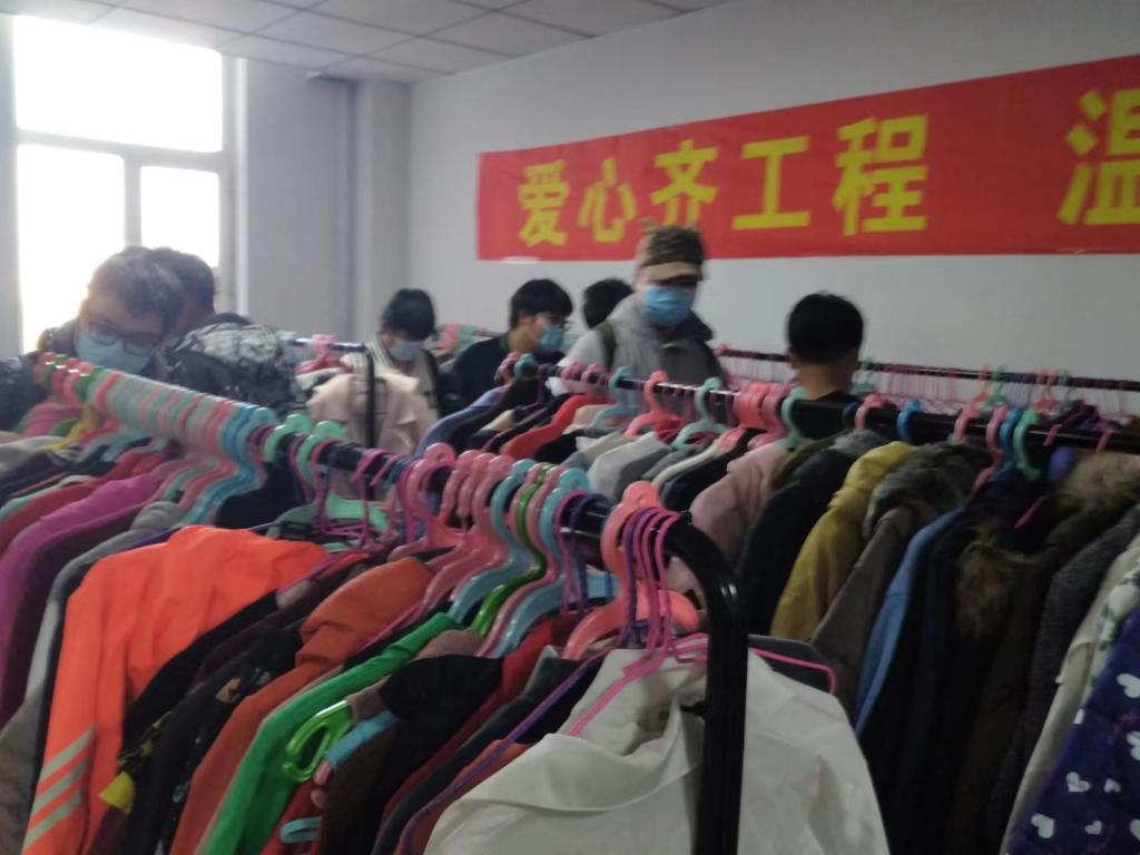 为了让有需求的学生在寒冷的冬天感受到学校的温暖,工会发出了“因为有爱,不再寒冷”全校教职工捐献闲置御寒衣物的号召。全校教职工积极行动起来,整理闲置衣物,购买手套围巾,亲戚、朋友处收集羽绒服、厚棉裤……很快图书馆四楼的“温暖驿站”内摆满了过冬的衣物。
