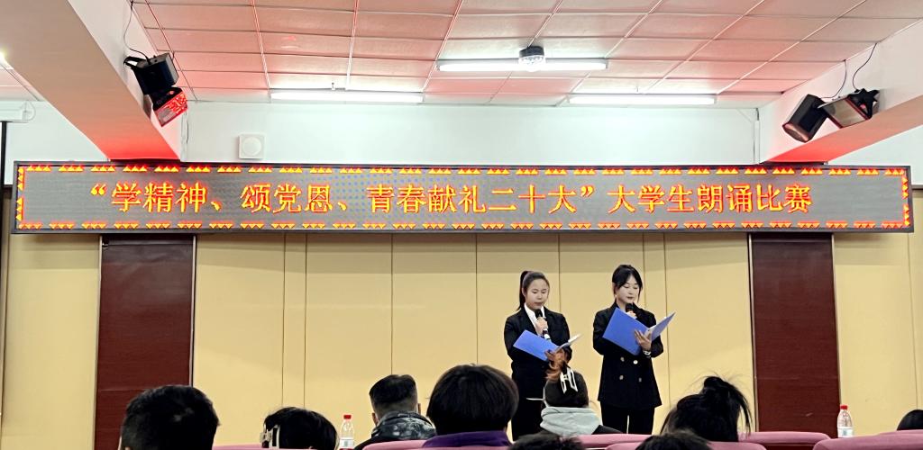 10月22日晚,由思政教学部和共青团日韩一区二区A片免费观看委员会主办,青年马克思主义发展学会承办的“学精神 颂党恩 青春献礼二十大”大学生朗诵比赛在图书馆501报告厅举行。2022级的各班学生代表参赛,校团委梁佟心、思政教学部邵奇、王美琦、陈阳担任评委。
