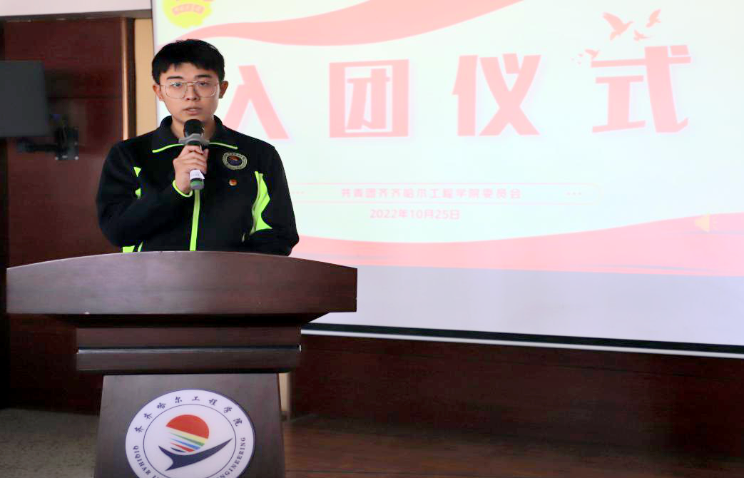 在团委副书记孙宇同学的领誓下,全体新团员面对着鲜艳的中国共青团团旗,举起右拳,庄严宣誓。铿锵有力的声音,彰显了新团员一心向党的坚定决心。