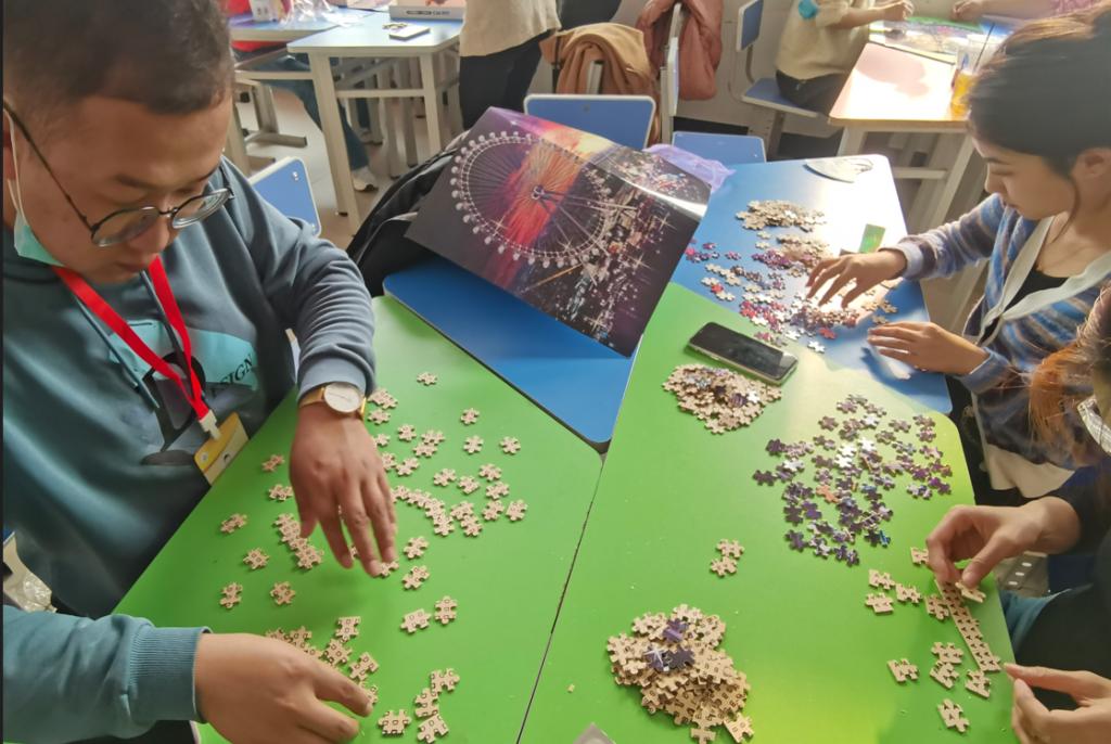 此次拼图是一次休闲活动,旨在让日常紧张工作的教师们能放松心情、缓解压力。
