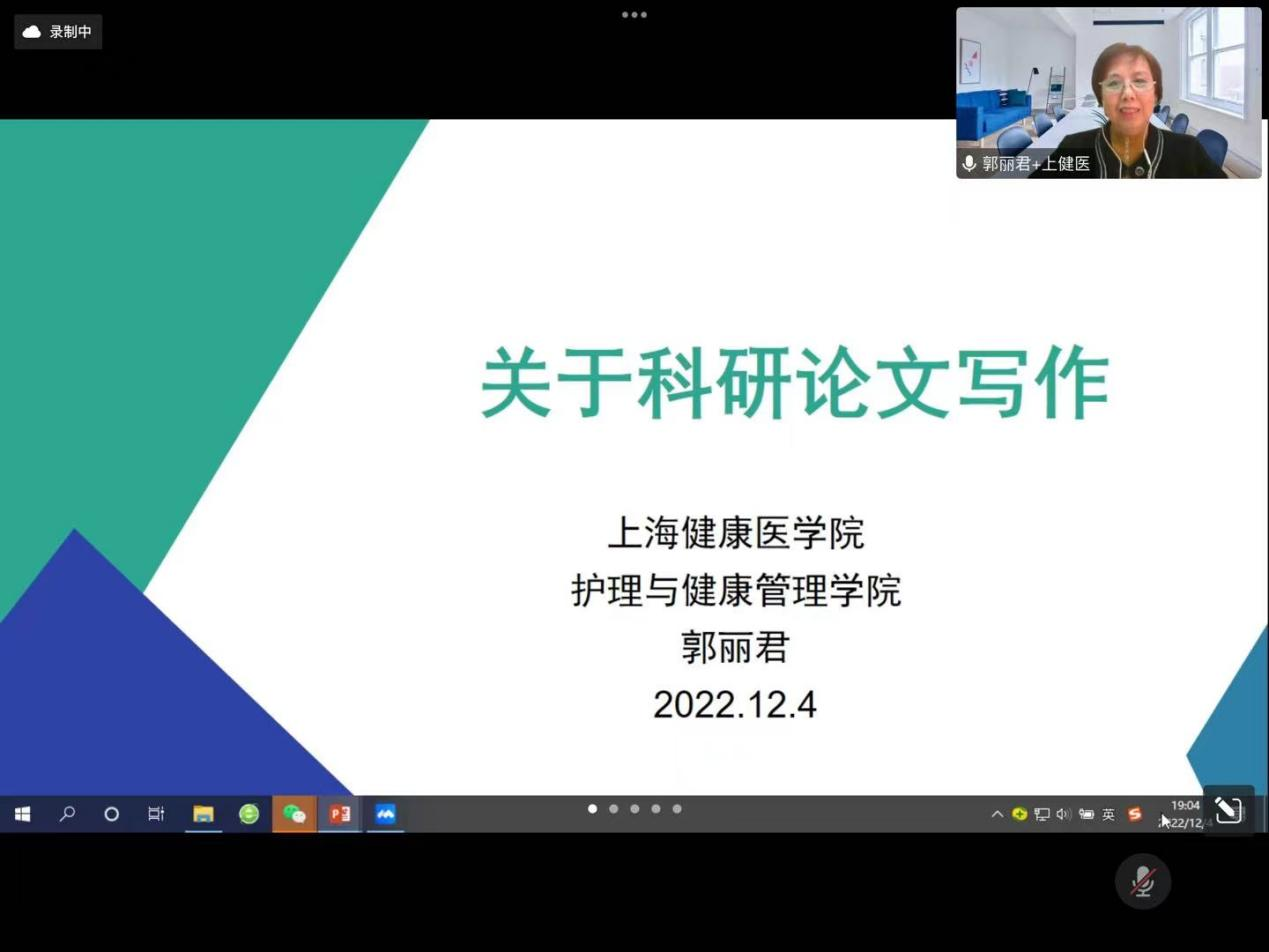 12月4日晚,健康服务与管理专业线上召开“做好科学研究,写好毕业论文”指导会,特邀请上海健康医学院郭丽君教授主讲。该专业全体教师、2019级全体学生与2020级部分学生参加,专业长毕茎娜主持。