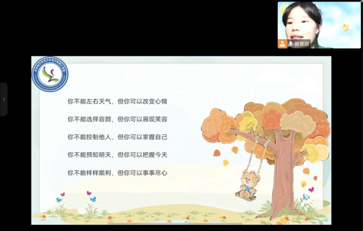 12月16日, 第二堂心理健康课由大学生心理发展协会滕慧丽同学作为主讲人,她以浅显易懂的方式教授学生认识情绪并学会调控情绪,做自己情绪的主人。