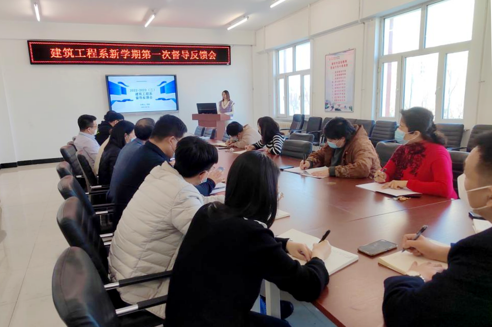 3月6日16点,建筑工程系在二号教学区2409会议室召开新学期第一次督导反馈会。系主任、督导、专业负责人、全体专业教师参会。