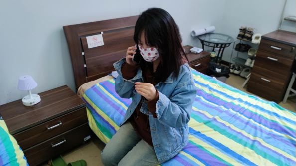 学生(具有基础疾病)在寝室内感觉不舒服,进行体温自测。